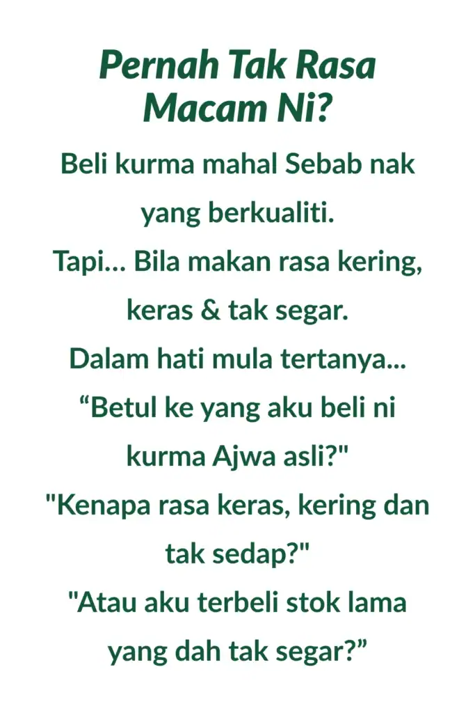 jaminan 100% wang anda di kembalikan jika kurma yang anda beli dari kami tidak segar atau rosak!